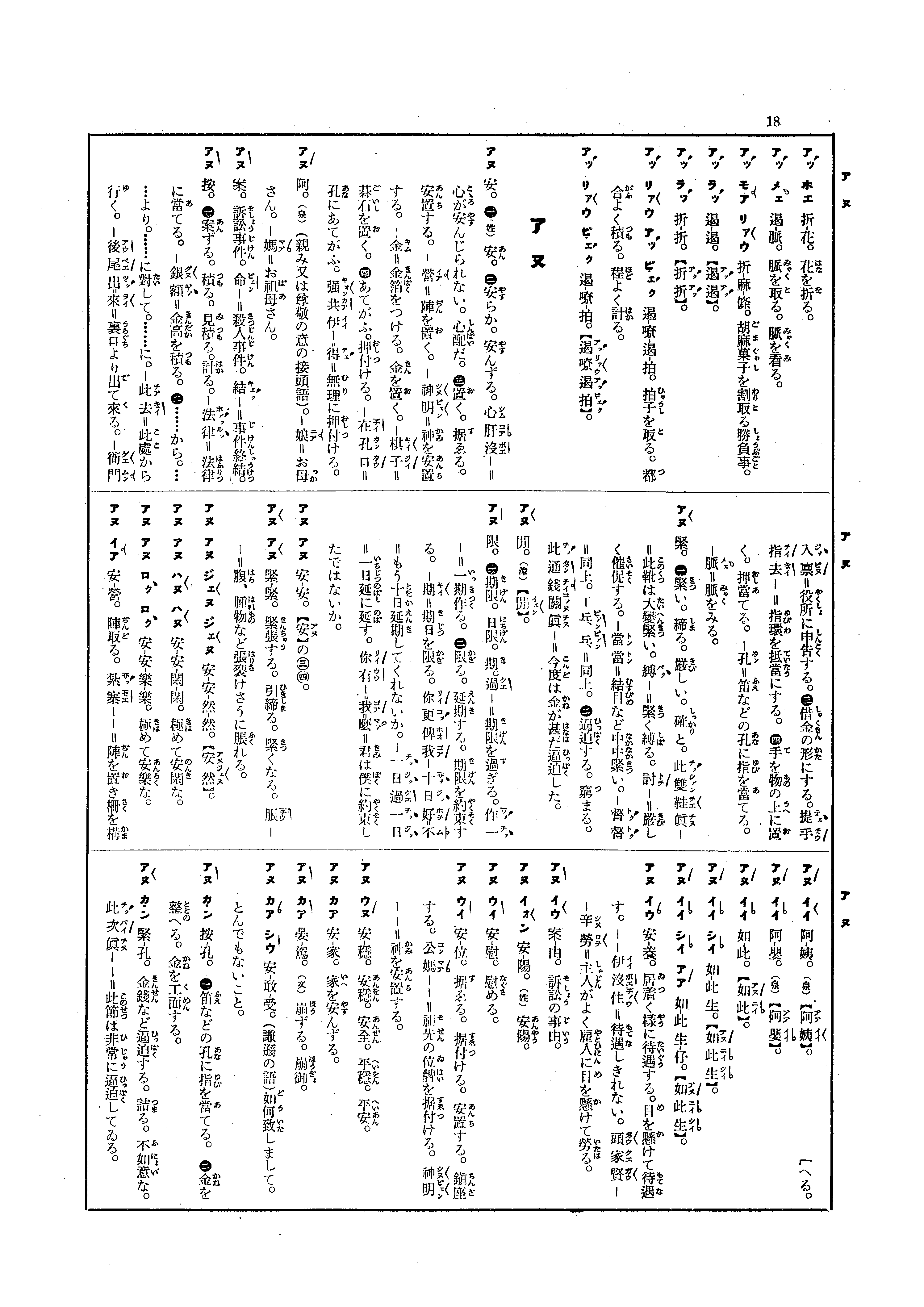 (1)∼ 法律=使用法律。∼ 銀額=計畫積錢。 (2)∼ 此(chia)去, ∼ 後尾出來, ∼ 衙門入稟(pín)=向衙門申告。 (3)The̍h手指去 ∼。 (4)∼ 孔=用指頭á ji̍h品á(=華語ê「笛子」)ê孔。∼ 脈=節脈。
